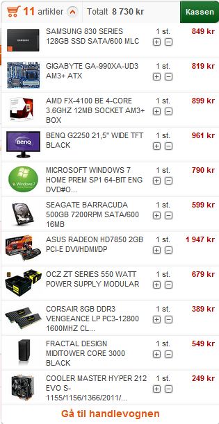 Loefthal Skrevet 27. juni 2012 Skrevet 27. juni 2012 Ikke dumt det oppsettet der. Jeg ville dog vurdert en modulær PSU som f.eks OCZ ZT Series 550W som du finner i både min og Sveibuens liste. Dustinhome er veldig gode på både service og leveringstid. De sender fra Sverige så vanligvis tar det én dag ekstra enn hva det ville gjort fra en butikk i Norge.