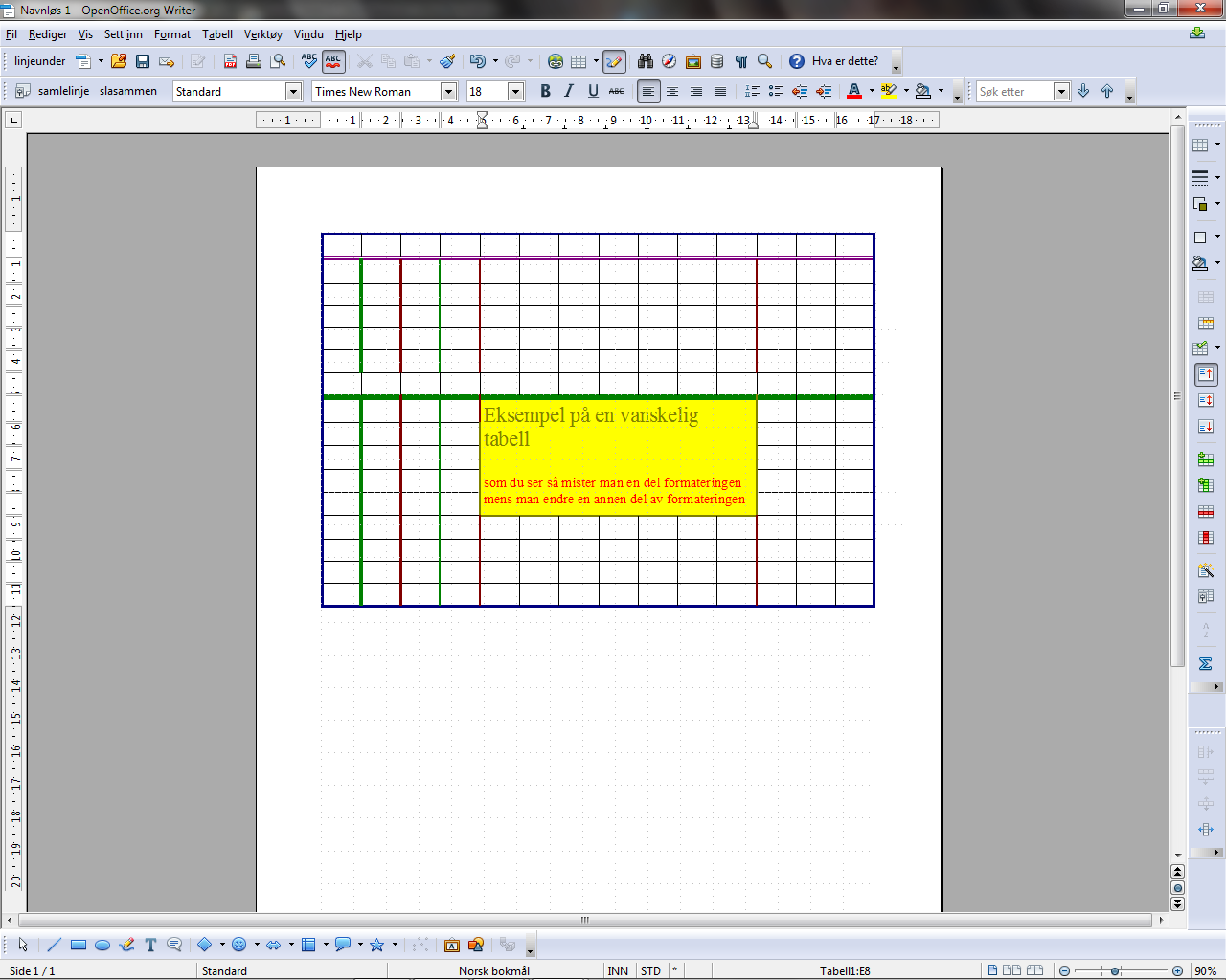 sinnaelgen Skrevet 1. juli 2012 Skrevet 1. juli 2012 (endret) Det er ingen dialog, ikonene for Line color og Merge cells er der hele tiden, ett klikk er nok. Hvis du skal endre store deler av en tabell kan jeg forstå at du liker MS sin funksjonalitet der, men noe stort issue er det ikke. det er slett ikke bare å klikke. en sak at man må kike på flere forskjellige verktøy ( linjestil,kantlinjefarge,kantlinjer) men da har man heller ikke mye kontroll på hvilke skillelinjer som får riktig farge . hos meng endres nemlig hele cellen i alle retninger bruker man den dialogen så kan man bestene om det er øverste, nederste ,linjen til venstre eller høyere som endres. Det samme gjelder de indre linjene også jeg tror ikke du har prøvd dette skikkelig Kan du vise oss et eksempel på en av disse tabellene dine? Før og etter redigering i Word? nå har jeg ikke brukt word på en stund. den er heller ikke installert på pcen Det var ikke snakk om de nyeste versjonen men den som kom i billigere pakke. Det er snakk om word 97 men jeg kan vise eksempler fra Open ofice hvis du ønsker litt nede på denne siden er det forklart hvordan dette med den pennen fungerer i eksemplet hvises det hvordan man former tabeller. når man fargelegger skillelinjene ( mellom ruten) skjer det på samme måte man kan også fjerne linjer med viskelæret Endret 1. juli 2012 av den andre elgen