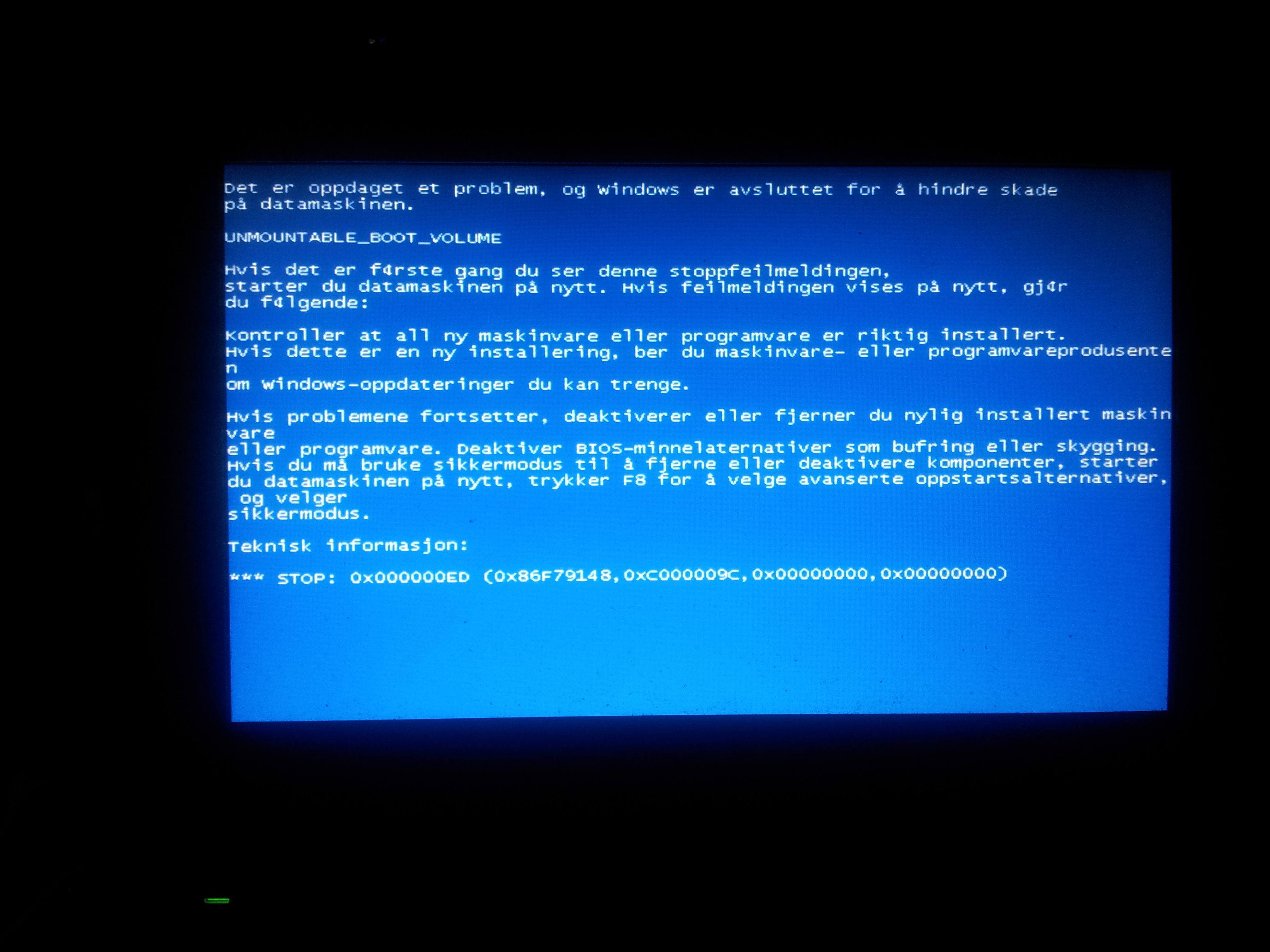 Akinakes Skrevet 28. juli 2012 Skrevet 28. juli 2012 Klarer du å lese bluescreenen? Eventuelt trykk F8 under oppstart og skru av automatisk omstart ved systemfeil.