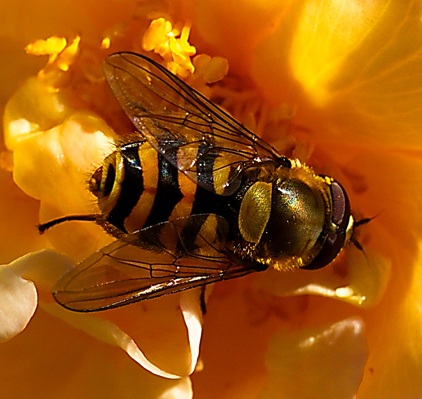 RandiA Skrevet 13. august 2012 Forfatter Skrevet 13. august 2012 (endret) En liten Syrphidae på min vei i dag Bilde 13 – 13.August: Ghislaine de Féligonde og Syrphidae Exif: 1/200 – f/7.1 - ISO 100 Exposure Compensation: 0 Focal Length: 60.0 mm Lens: EF-S60mm f/2.8 Macro USM Drive Mode: High-speed continuous shooting Camera Model: Canon EOS 50D Her er den i Close-up: Egentlig var roser mitt tema i dag - mer om dette i bloggen. Endret 14. august 2012 av RandiA