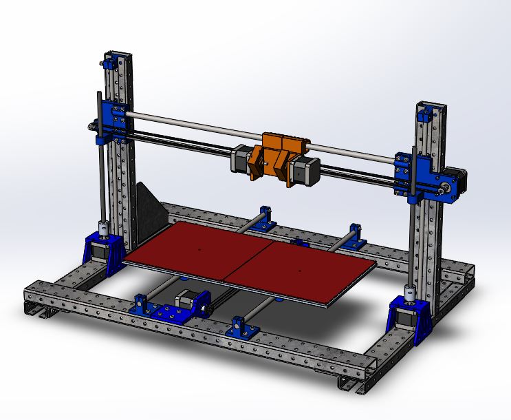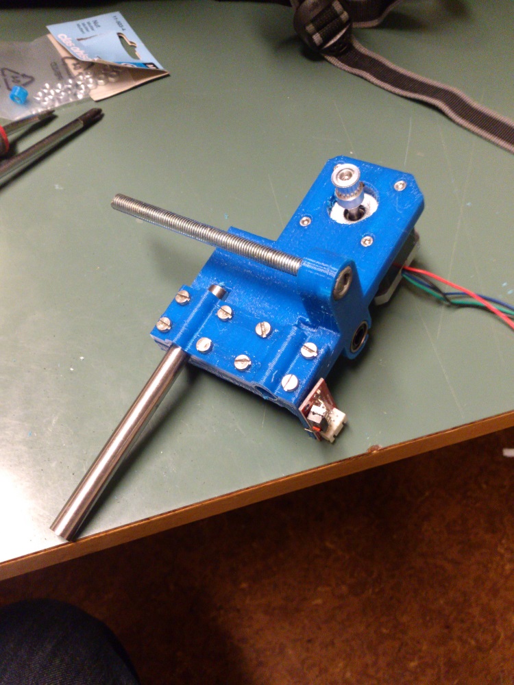 Wraith Skrevet 31. januar 2014 Skrevet 31. januar 2014 Testmonterte litt til den nye 3d-printeren i dag. Prøver å printe så mye som mulig uten supports (og har tegna delene for det), men litt finpuss må til før det kan monteres. Det her er Z-aksecarriage med montert motor for X-aksen: Har valgt å feste X-aksestengene med skruer fordi det skal være lettere å montere/demontere, jeg tenkte å eksperimentere med litt forskjellige extruderoppsett, for eksempel to uavhengige extrudere. Det her er oversikt over skriveren, ganske standard oppsett, men har bygd den på en haug C-kanaler jeg fikk fra skolen.