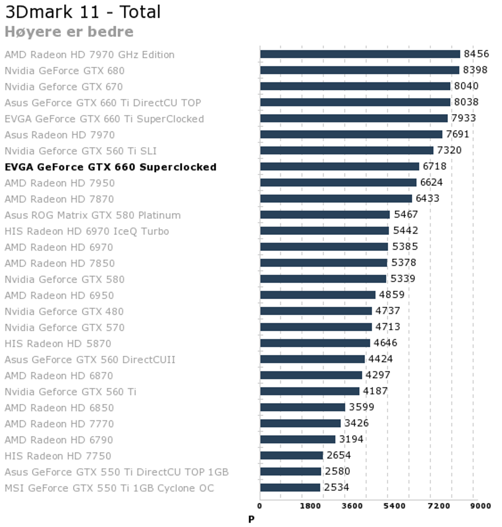 Lami Skrevet 21. september 2012 Skrevet 21. september 2012 Ikke i nærheten av sant, 7950 er likeverdig/bedre enn 660 Ti avhngig av oppløsning og 7870 er litt bedre enn 660. http://www.techpowerup.com/reviews/MSI/GTX_660_Twin_Frozr_III/27.html http://www.computerbase.de/artikel/grafikkarten/2012/test-nvidia-geforce-gtx-660/4/ http://www.hardware.fr/articles/876-21/recapitulatif-performances.html Jo. I 3Dmark11 har den høyere score: http://img.gfx.no/1077/1077695/3Dmark11Total_Hyereerbedre.png Ellers mtp han skal spille WoW, så er GTX660 bedre.