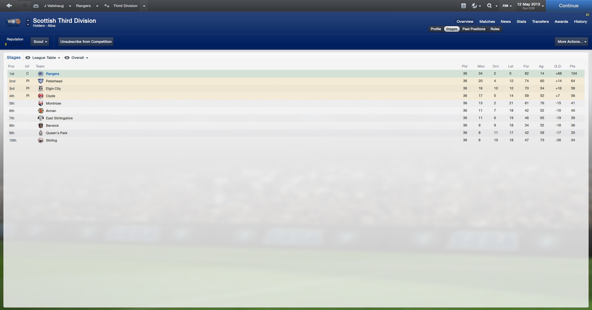 Syncz Skrevet 26. november 2012 Skrevet 26. november 2012 (endret) Da var promotion sikret, 8 kamper før slutt med Rangers hehe. Er også i cup semien mot Celtic (skjønner ikke helt hvordan cupen foregår siden jeg ble slått ut av Celtic før, kanskje det var en annen cup? men jeg vant en cup også, meeh) anyways god sesong. Mikael Fossell har vært en god signering for meg, 22 mål på 33 kamper atm ^^ Endret 26. november 2012 av Syncz