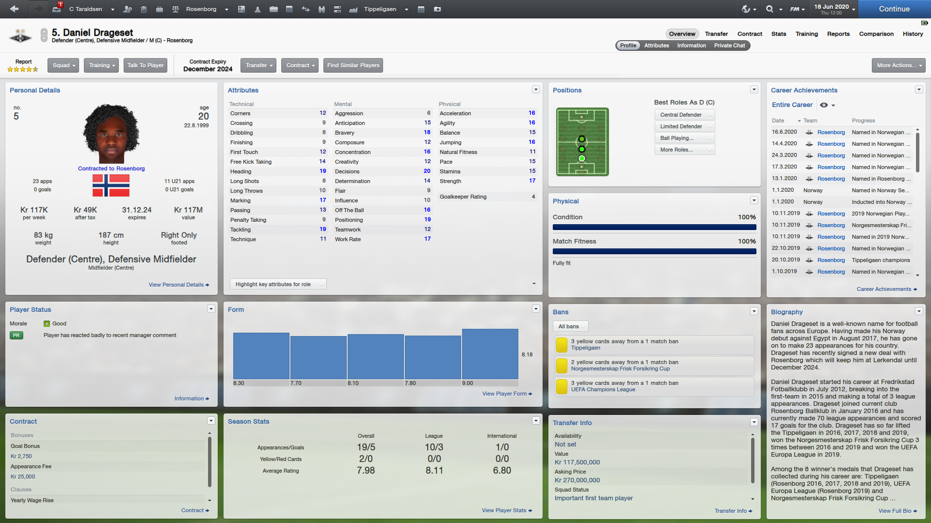 Thommesen Skrevet 31. desember 2012 Skrevet 31. desember 2012 Jeg er i 2019, startet med en Norsk klubb som ikke kunne hente noen gode nordmenn i starten, og nå er de langt utenfor min rekkevidde. Det har så langt kommet opp en regen i Norge som har et internasjonalt potensiale. Han spiller selfølgelig ikke i Norge. For å summere - dårlig med Norske spillere. Jeg har satset brutalt på Norske spillere, og har derfor pdd kun 7-9 utlendinger.