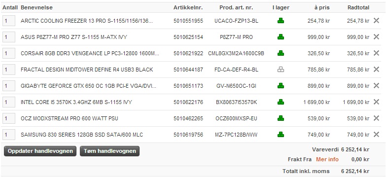 Slacks Skrevet 3. oktober 2012 Forfatter Skrevet 3. oktober 2012 (endret) Ok, takk for godt og utfyllende svar, men tror jeg foretrekker å kjøpe alt nytt. Jeg kommer stort sett til å spille eldre spill som ikkje krever så mye. Mulig jeg kan vente med skjermkort og bare bruke det integrerte til jeg vet hva jeg vil? Men spørsmålet er om jeg kan bruke dual-link dvi med 2560x1440 uten å ha dedikert skjermkort? Eller er avhengig av skjermkort for dvi-d. Jeg tenker selvfølgelig ikke å spille i denne oppløsningen, men det er viktig at det fungerer godt ellers. Edit: La til oppdatert oppsett. Fikk litt inspirasjon fra en annen anbefalingstråd. Endret 3. oktober 2012 av Slacks