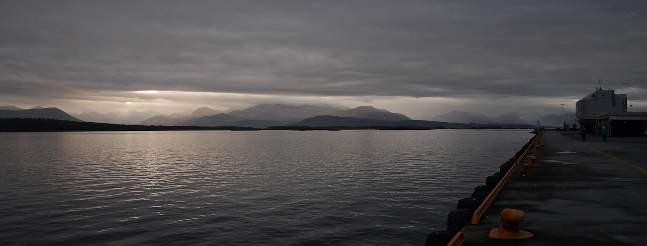 smort1 Skrevet 6. november 2012 Skrevet 6. november 2012 Skumring i Molde! En ettermiddag sent i oktober, og høstmørket forsterkes nå skylaget er slik som her! Syntes belysningen var litt spesiell denne dagen. Her et utsnitt med utgangspunkt i Storkaia i Molde, sett sydvestover.... Hadde funnet fram et gammelt apparat (Panasonic's første digitale speilrefleks)....! Artig å prøve den gamle, og det passet igrunnen siden det var noen med stokk som spaserte forbi.... Panasonic DMC-L1 og Olympus Zuiko Digital ED 14-42mm1:3.5-5.6 Brennvidde: 14 mm Lukkertid: 1/250 s Blender: f/3.5 ISO: 100 1