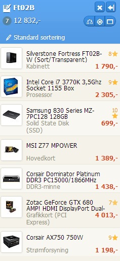 lumfong Skrevet 25. november 2012 Skrevet 25. november 2012 (endret) Hei alle! Har planer om å bytte ut maskinen min nå over nyåret. Og jeg trenger litt hjelp til valg av komponenter. Den nåværende riggen skal selges. Og jeg trenger derfor alt av enkelt-komponenter, med unntak av kabinett. Har skaffet meg et Silverstone Fortress FT02B-W, som jeg personlig synes er et fint utgangspunkt. Jeg har satt opp en liste på Prisjakt.no som jeg tror er ålreit. Må innrømme jeg kun har sett på tall som er oppgitt fra produsent, og ikke sett noe særlig på anmeldelser. Det er sikkert noen her inne som kan finne noe som gir mer pang for penga. Kom med forslag! Lista: http://www.prisjakt....?l=33790&view=m Edit: La til bilde med Über kort liste Endret 25. november 2012 av lumfong