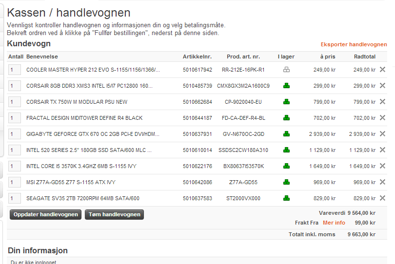 Swiggle Skrevet 29. desember 2012 Forfatter Skrevet 29. desember 2012 @Loefthal Kunne du tenkt deg å sette sammen en liten handleliste på komplett eller dustin (eller en annen side du foretrekker) som viser hva jeg bør kjøpe ?