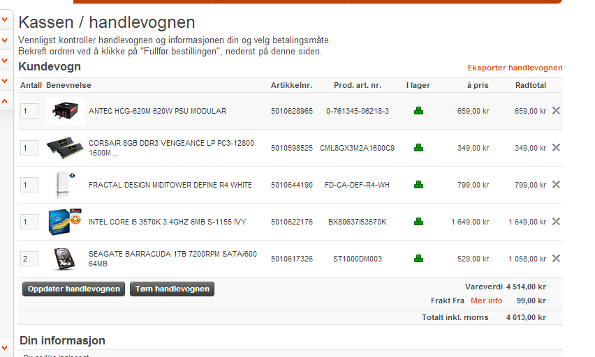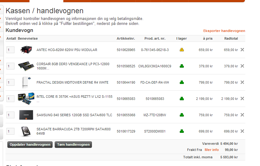 Siggihm Skrevet 22. januar 2013 Skrevet 22. januar 2013 Det er ikke noe HK her. Men ellers greit, trenger kanskje ikke så mye W på PSU men det er en utrolig bra PSU med knall garanti! hva skal pc brukes til? Ville endret HDD fra 1T til 2T, koster 150,- mer for 2T disken. Da betaler du mye mindre pr. GB.