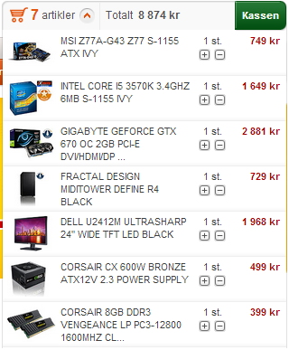 imtheone Skrevet 17. februar 2013 Skrevet 17. februar 2013 Da har jeg endelig bestemt meg for å bygge en skikkelig pc. Er for det meste til spilling, blant annet bf3. Har satt opp en liste på Dustin med hva jeg kunne tenke meg, men er interessert i å høre hva andre med erfaring i pc bygging har å si. Er mest interessert i om delene passer sammen og om strømmforsyningen passer og er sterk nok. Viss noe burde byttes ut vil jeg helst holde det i samme prisklasse. Kommer sannsynlig vis ikke til å overklokke, grunnet lite erfaring med dette. Har tastatur, mus, cdrom, og hardisk, tar det fra en eldere pc jeg har. Takker for svar:)