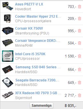 TeflonTim Skrevet 23. april 2013 Forfatter Skrevet 23. april 2013 Skjermkortet ligger nederst på bildene over. Men har byttet det ut med et annet nå. Kommer til å bestille i morgen med midre folk mener dette oppsettet er helt mongo. Byttet ut strømforsyningen til en litt billigere. Om den er bra vet jeg ikke Her er siste revisjon: