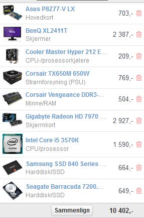 TeflonTim Skrevet 23. april 2013 Skrevet 23. april 2013 (endret) Hei. Har planer om å bygge meg en ny pc for å spille div. FPS spill. Da jeg ikke har noe særlig peiling på hva som er bra for tiden, og hva som passer bra sammen spør jeg her. Jeg har lest litt rundt på andre tråder, tester, osv og gjort meg opp en liten mening om hva jeg kan få for rundt 10-12K. Jeg bruker det gamle kabinettet mitt til å bygge i. Det er et Coolermaster Wavemaster kabinett. Mus har jeg også fra før av.. Ting jeg ikke har listet opp ennå er: - PSU - CPU vifte - DVD brenner - Tastatur - Skjerm Det jeg har listet foreløpig er vel overkill, men kan vare en stund? Eller skal jeg gå for den 8500kr pcen som er under "basic oppsett"posten? Vet ærlig talt ikke hvor kraftig pc jeg trenger... Uansett, kom med forslag og fyr løs. Takker for svar Endret 23. april 2013 av TeflonTim