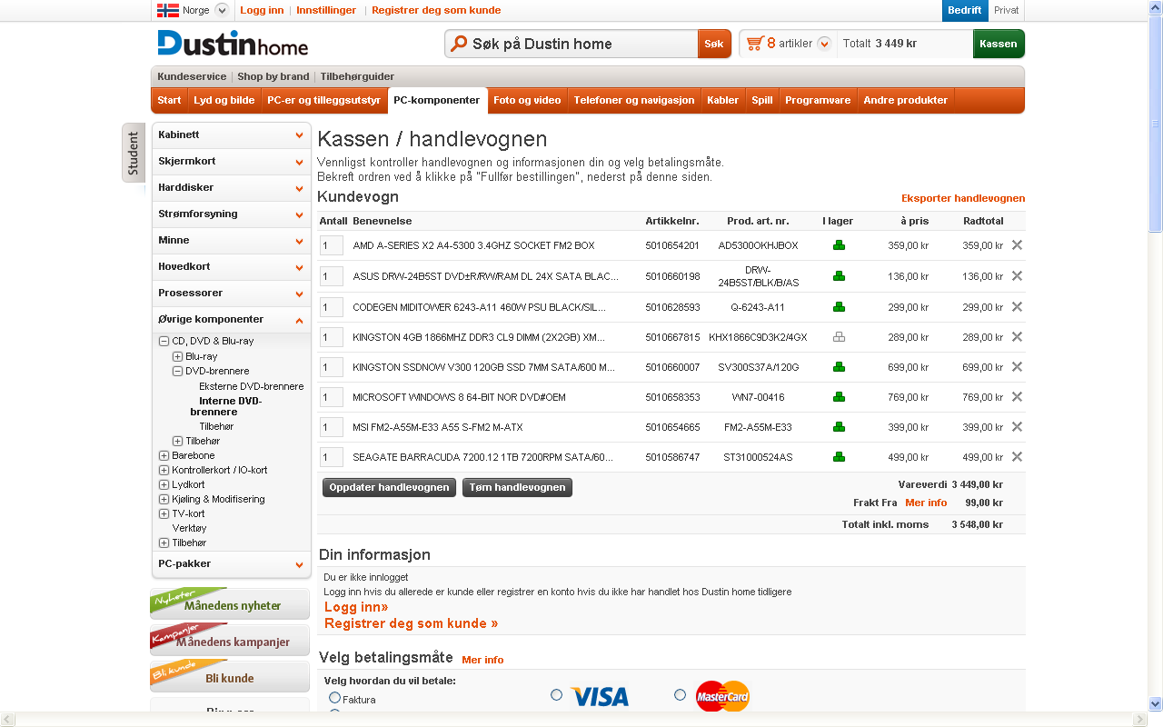 wassup Skrevet 6. mai 2013 Skrevet 6. mai 2013 (endret) Hei, jeg skal hjelpe en venn med ny pc, den skal brukes til nettsurfing. vil prøve og bygge selv, har veldig lite peiling på dette, men må ha ssd Noen som har noen bra forslag ? pris må ver rundt 3500kr Komplett stasjonær med SSD til 3 500? Den var ambisiøs. http://www.netonnet.no/art/data/komponenter/data-i-deler/amd-datoridelar-a85600k/185956.7144/ denne skulle vel være helt grei. SSD er ikke med, så da kan jeg anbefale denne. EDIT: Hvis den bare skal brukes til nettsurfing, kunne han like gjerne kjøpt seg iPad... EDIT 2: feil link til PC´en, retta opp nå. Endret 6. mai 2013 av wassup