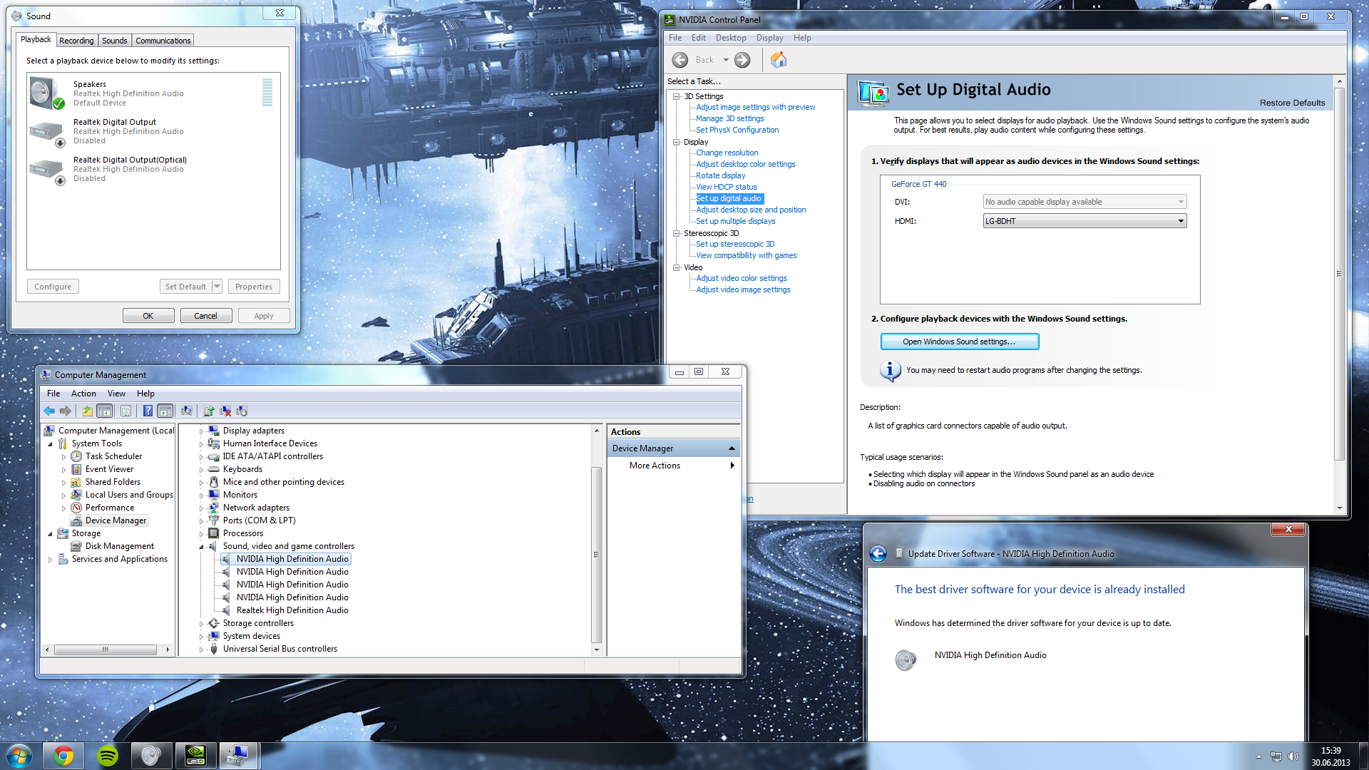 TheKims Skrevet 30. juni 2013 Skrevet 30. juni 2013 Jeg har vært nødt til å ha på utvidet skrivebord for å sende lyd gjennom HDMI til Reciever.