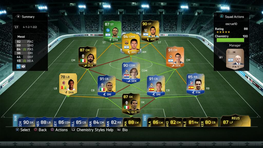 oscrue10 Skrevet 22. juni 2014 Skrevet 22. juni 2014 hvem du selger til da??? Var en jeg kom i kontakt med på nettet, og nå anbefaler han meg videre. Er ikke folk jeg kjenner. 85 average pace er litt i overkant, men dette ser bra ut. Det der er ikke noe godt lag (etter min mening). Forsvaret er alt for offensivt til den formasjonen, og det hjelper heller ikke at midtbanen er så offensiv i tillegg. Fått noen kommentarer på work rates på Sokratis og Luiz, men merker ikke noe til at det er et problem ingame. Spilte bare 1-2 kamper med Ramires der før jeg bytta til Lampard. Ramires skulle inn på CDM i et annet lag. Kjøpt inn litt flere spillere nå som jeg tjener så mye på salg av coins. Har et lag som ser slik ut. Neste spiller inn nå blir IF Pirlo, men det blir naturligvis et helt annet lag.