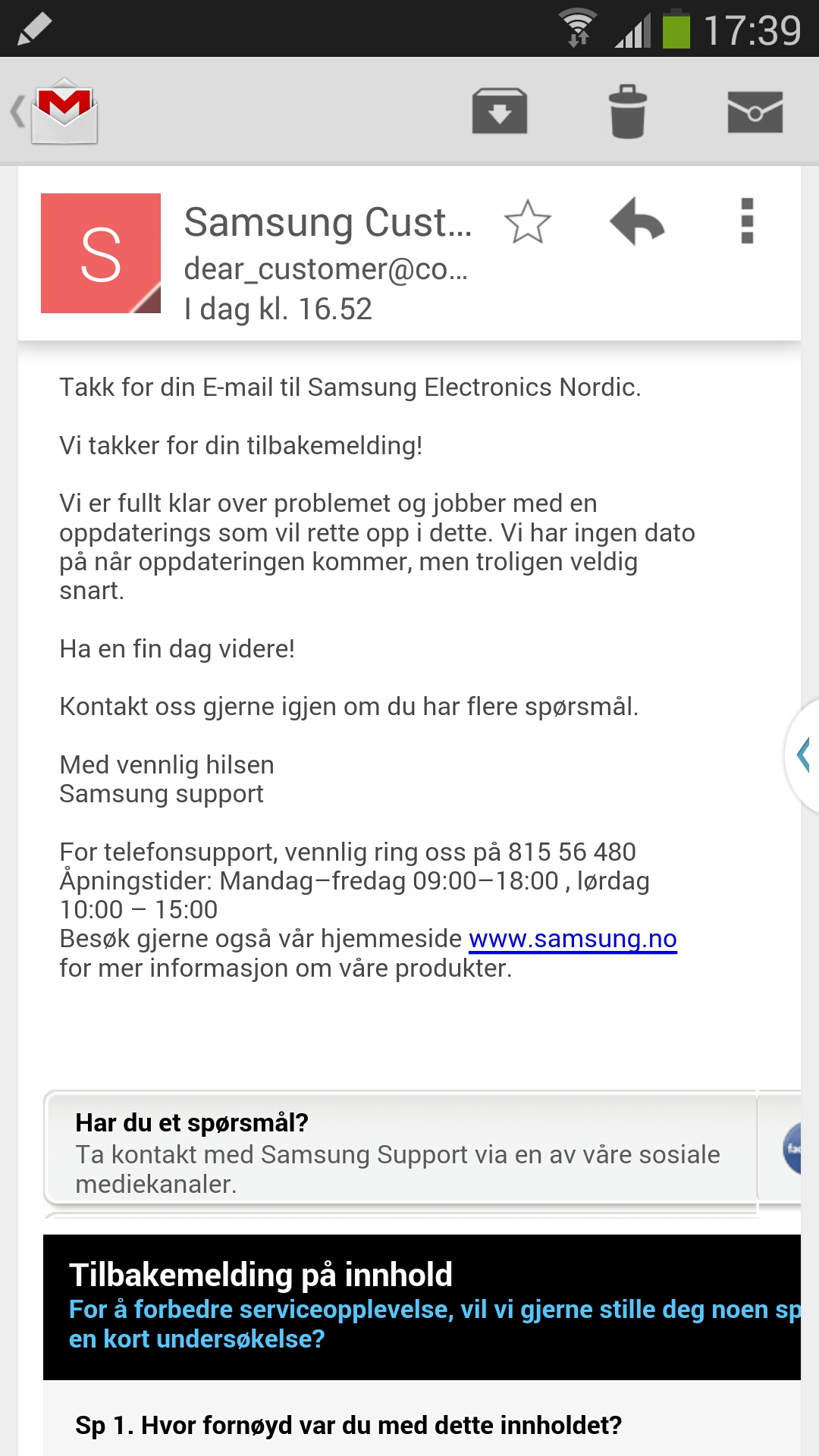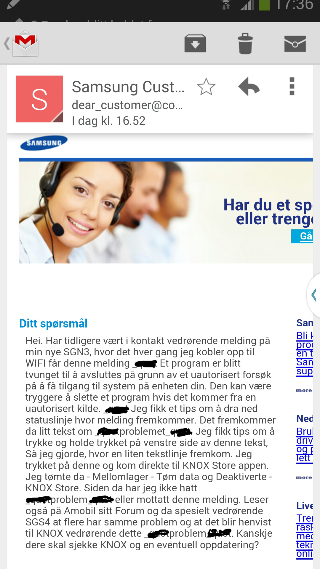 Positivt svar fra Samsung Support vedrørende KNOX problem