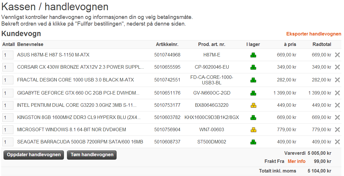iNorway Skrevet 22. oktober 2013 Skrevet 22. oktober 2013 Har sjekket etter på NetonNet, Komplett og diverse andre nettbutikker. Trenger egentlig å vite hva du skal spille, detaljnivå og slikt. Men for øyeblikket sliter jeg med å finne noe til 5k. Og jeg har brukt de siste 5 mnd på å finne rett deler, osv osv til min egen.