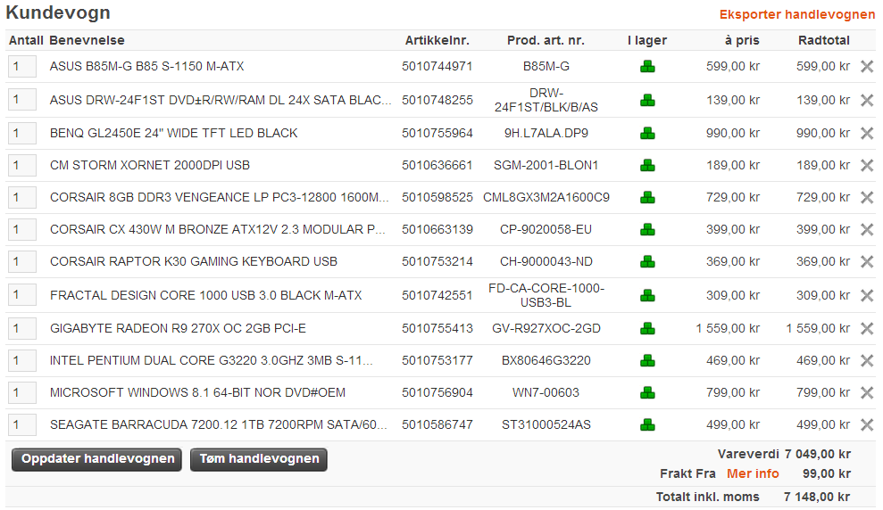 Nlklas Skrevet 28. november 2013 Skrevet 28. november 2013 En kompis som vurderer å bytte til PC istedenfor å følge Sony videre med playstation 4. Han ser for seg maks pris på 7000 kroner. Kan nevnes at han ikke har skjerm, mus eller tastatur. Så det må legges til. Merke har ingenting å si, så AMD/Intel eller Radeon/Geforce har ingenting å si. Bare han får litt pc for pengene. Ferdigbygde merkepcer tas og imot, bare det ikke går over prisen. Jeg har selv prøvd å sette opp noen oppsett til han, men det var for dyrt. Spill som planlegges å spilles er Battlefield 4, muligens spill som Assassins Creed, Watch_Dogs og GTAV. Takk på forhånd!