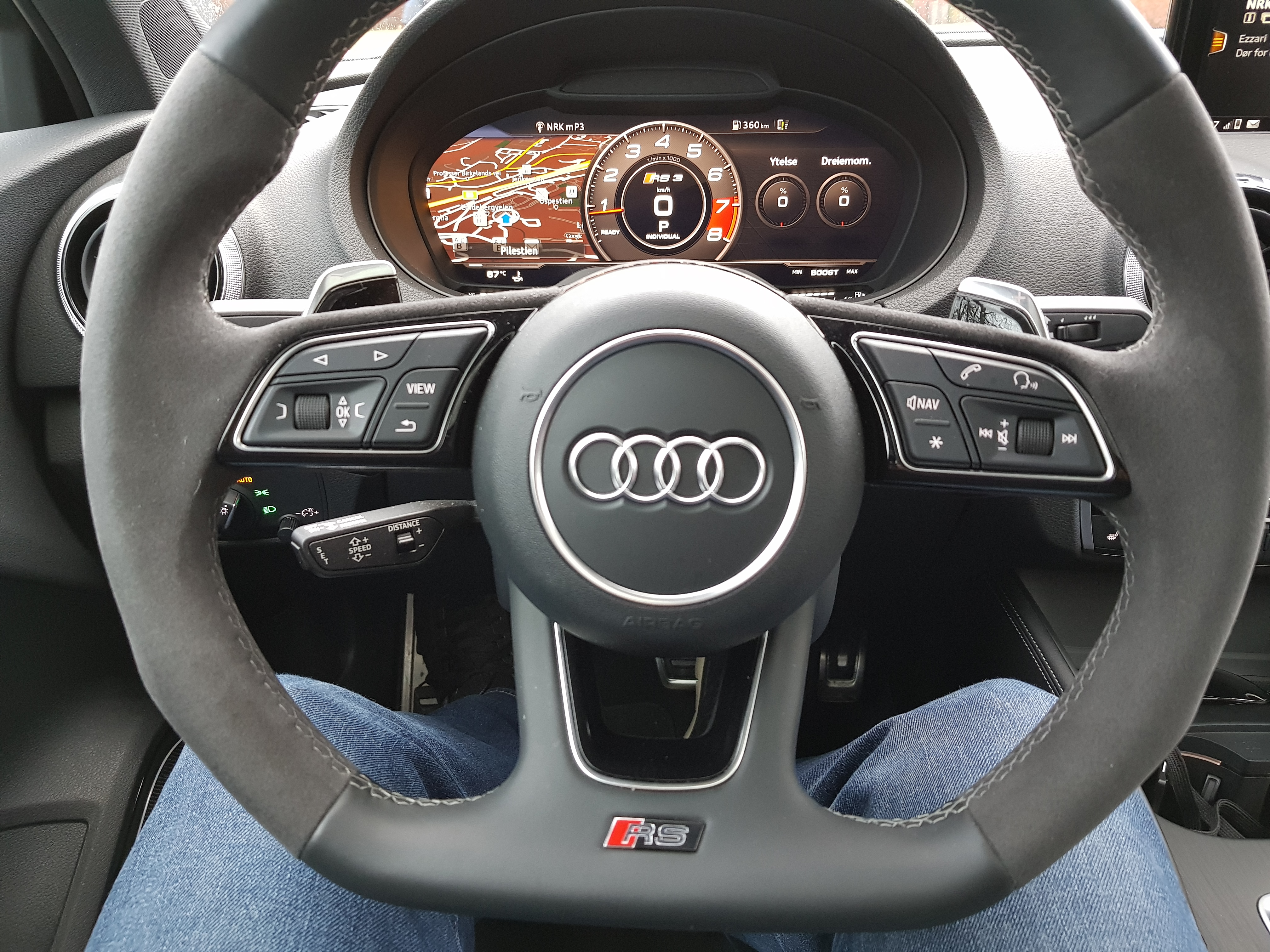 Ja, den tanken varer ihvertfall ikke lenge på RS 3. Rekkevidde på 460km ved full tank, men med litt (eller konstant) pådrag kan du nesten halvere det tallet..