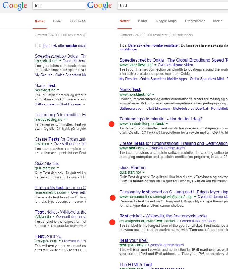 sdf123 Skrevet 6. januar 2014 Skrevet 6. januar 2014 Når jeg søker etter noe i Chrome så får jeg ikke opp hele URLn på søkeresultater, kun Wikipedia og ikke en.wikipedia.org/wiki/Test_cricket som jeg gjorde tidligere. På vedlagt bilde har jeg søkt på 'test' i Chrome og IE, og som dere ser på Chrome(den til venstre så er alle URLr forkortet. Hvordan får jeg det slik som i IE på høyre side?