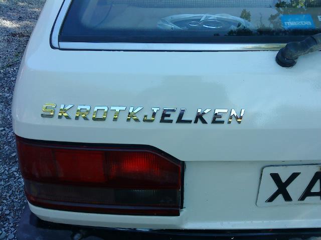 Kjøpte den av en (kloss)major, ihjel røyka å fæl. 10.000 ga jeg for den. Førerdøra hadde blitt opplakkert av en 10 åring(skulle man tro), hele døra flassa verre en en tørr hodebunn. Sånn brun tjafs lå å irriterte hjulbuene på den også. I tillegg greide min bestemor å rygge på fremre hjulbue, årsaken var i følge henne at det ikke brukte å stå noen bil der.