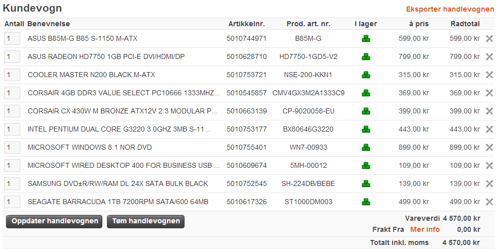 Omnithunder Skrevet 13. januar 2014 Skrevet 13. januar 2014 Merke-PC'er er typisk vanskeligere å oppgradere, så det beste er å bygge selv. Hvis du skal bygge selv, ville jeg ha satset på et Intel basert oppsett. Jeg har satt opp et forslag der du kan oppgradere minne og skifte CPU (opp til og med Core i7) uten å bytte hovedkort. Delene er fra Dustin home og har fri frakt: 2