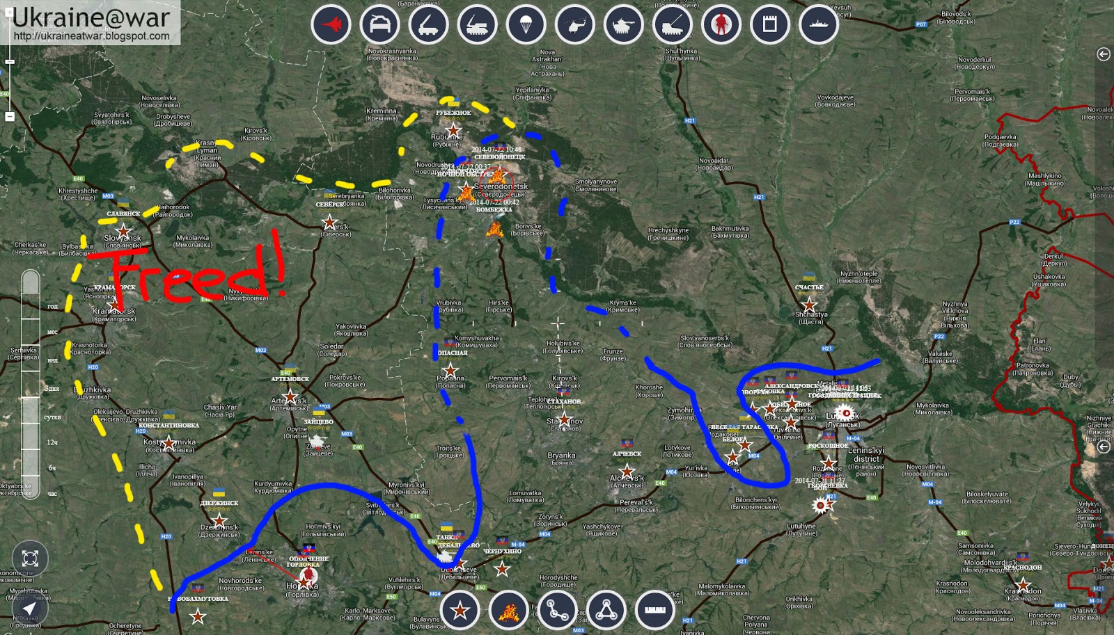Mr.M Skrevet 22. juli 2014 Skrevet 22. juli 2014 Situasjonen i dag kl12:00 Etter at kartet ble publisert er det meldt at Severodonetsk øverst på "fingeren" har blitt vunnet av UKR med Ukrainsk flagg på administrasjons bygningen - også Lysychansk ble akkurat nå også meldt vunnet. Flere mindre byer nedover "fingeren" er under angrep. Det meldes også om harde kamper rundt Luhansk i dag. Spørs om ikke separatist-opprøret synger på siste verset. Ukrainske hæren blir stadig mer organisert og har tilgang til mer mannskaper og utstyr, så jeg vil tippe det kun er snakk om uker før de har tatt tilbake kontroll i alle distrikter.