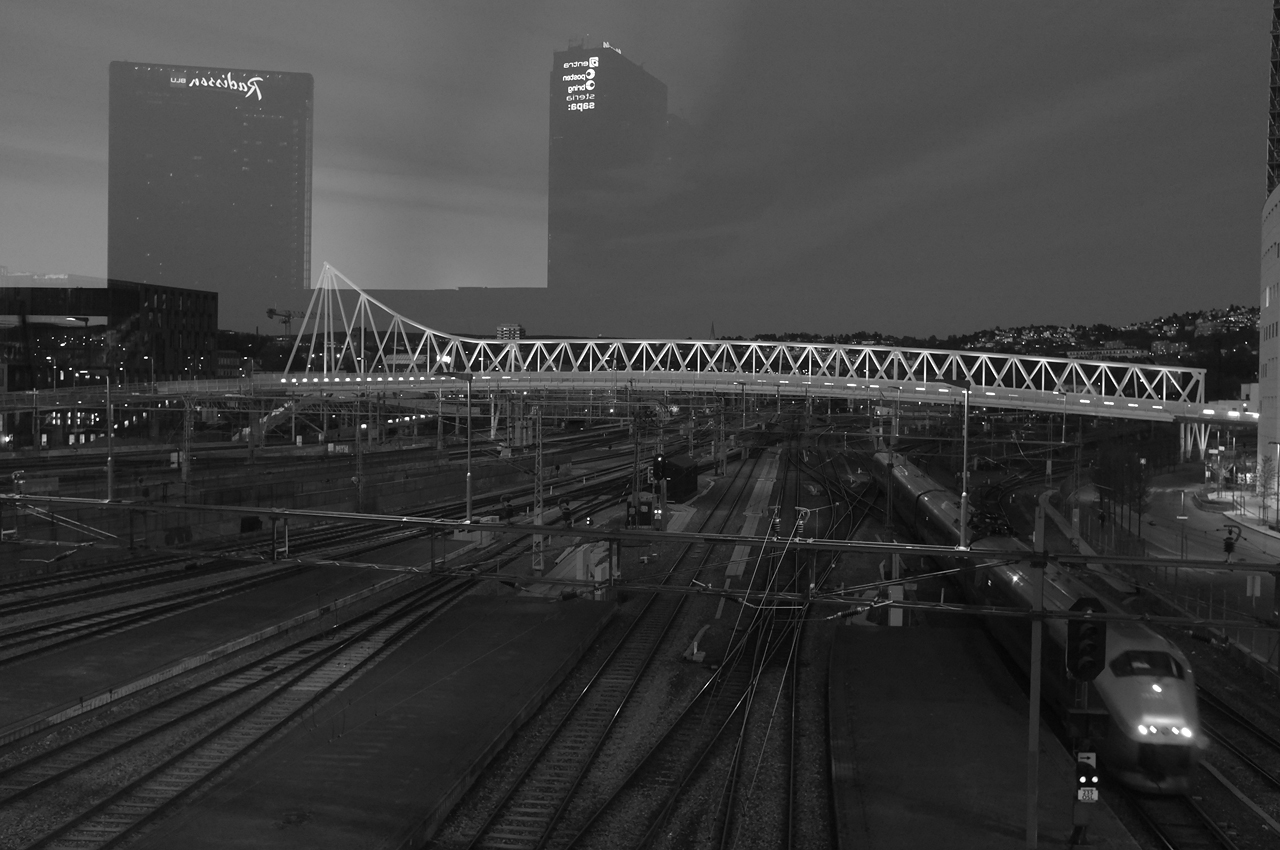 Jan R. Halvorsen Skrevet 29. april 2014 Forfatter Skrevet 29. april 2014 (endret) 29. april - Oslo S pluss pluss Tatt fra gangbroen over til Schweigaardsgate (tror jeg). X100, F4, 1/80 sek, ISO 2000. Andre veien.. Endret 29. april 2014 av Jan R. Halvorsen