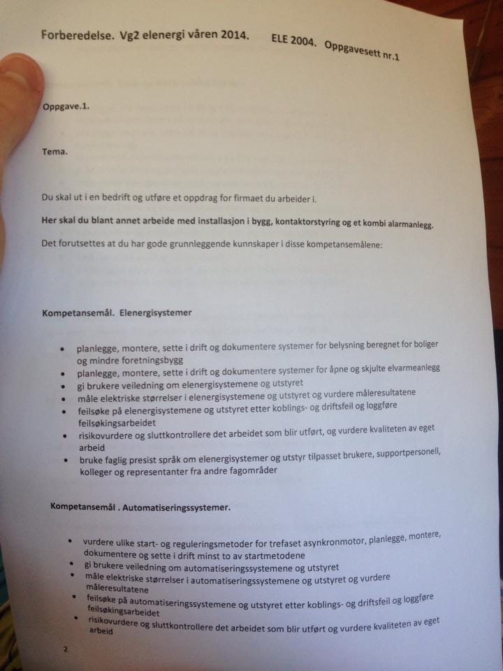 Skoleguttfcb Skrevet 26. mai 2014 Skrevet 26. mai 2014 Jeg fikk i dag vite mitt tema for Vg2 El-energi eksamen. Temaet er: Installasjon i bygg,kontaktor styring og et kombi alarmanlegg. Jeg føler at alarmanlegg biten skal gå ganske bra. Litt mer usikker på hva som skjuler seg bak installasjon i bygg og kontaktorstyring. Installasjon i bygg: Har skrevet noen ting,som jeg tror kan være viktig å kunne under installasjon i bygg delen. Innfelts belysning er lamper og spotter som er skjult,at koblingen er inne i veggen,og at bare lampen/spotten kommer til synet. Stemmer dette? Hvorfor er det alltid 2 polt på bad? Hvordan velger man riktig størrelse på varmekabel og ovn? (kom gjerne med flere punkter) Kontaktorstyring: Her er jeg helt blank.. Eneste jeg vet om en kontaktor er at det er spoler,og at det er en fjør for hovedstrøm og en for styrestrøm. Og at den vanligste kontaktoren er AC3. Har dere noen tips eller forslag til hva jeg burde øve på etter å ha lest punktene på arket? Alle tips og forslag tas hjertelig i mot. Beklager visst oppbyggingen er rotete og plasseringen av tråden er feil.. Dette er mitt første innlegg på denne siden.