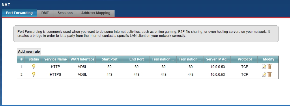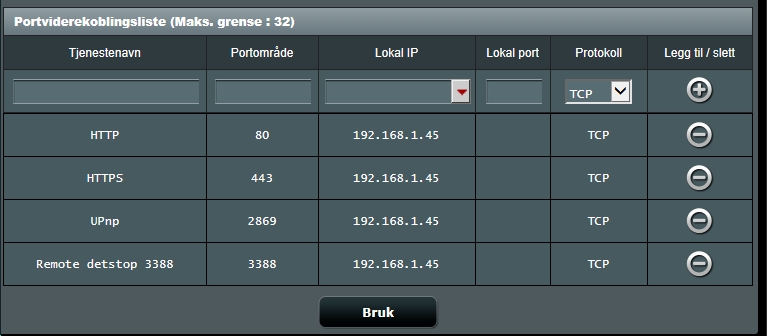 ChrisCo Skrevet 9. juli 2014 Skrevet 9. juli 2014 Flott! Da kan du glemme Zyxelen fra nå.. Nå er det Asusen som gjelder..... Da forwarder du de portene serveren trenger til serverens IP adresse... Men ingen av de portene du har lagt inn allerede, er nødvendige strengt tatt...