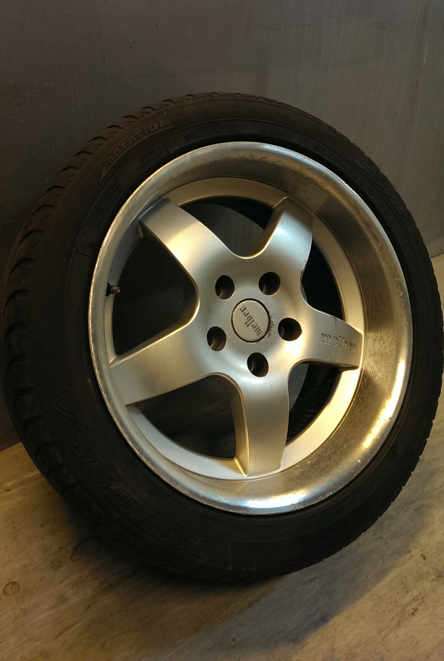 Anonym259235 Skrevet 18. juli 2014 Skrevet 18. juli 2014 Har et sett med Melber-felger. Er 17-tommere og antar de er 8,5 tommer brede, da de står på 235-dekk uten strekk. Én eller to av dem har litt flasset lakk i senteret som du ser på bildet, men alle fire har litt korrosjon i kantringen. Men hva heter de og hva er de verdt?