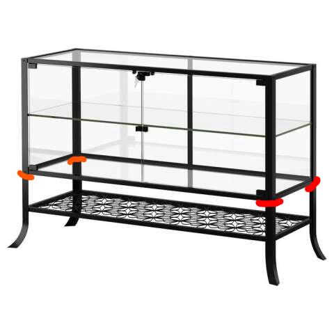 enurweb Skrevet 22. november 2014 Skrevet 22. november 2014 Hei folkens! Jeg håper dere kan hjelpe en ikke så altfor handy kar med et mini prosjekt. Har fått tak i 2 stk vitrineskap i glass som er dekket av stålkanter som rammeverk. Ettersom jeg egentlig er på utkikk etter et glassmonter til å utstille samleobjekter i har jeg en ide som jeg trenger hjelp til å utføre på best mulig måte. Tanken min som dere kan se på bildene jeg legger ved er å få kuttet ned benene på det ene skapet så det er bare litte grann ben igjen. Dette er da delen som skal stå på gulvet i bunnen. Skap nummer 2 hadde jeg tenkt å kappe ben helt av på så jeg kan sette dette skapet oppå det andre. Kappene har jeg illustrert markert i rødt på bildene. Legger også ved originalbilde uten noe rødt samt bilde av hvordan jeg ser for meg hvordan dette skal bli til slutt. Ser for meg å kanskje feste skapene sammen med å borre hull i hvert hjørne og sette inn skruer og muttere. Utfordringene mine er flere: ● Jeg eier akkurat nå ingen metallkutte verktøy utennom håndsag. ● Vil forslaget mitt kunne fungere? Tenker på vekten det nederste skapet vil få oppå seg. ● Er mest redd for å kappe benene på underste skap feil eller ugjevnt. ● Tenker siden dette er stål så vil toppen av underste delen og bunnen av øverste delen muligens ikke være helt gjevne når de kommer sammen oppå hverandre. Må kanskje legge en liten gummiliste imellom hele veien rundt før jeg fester med skruer og muttere i alle hjørnene? ● Skapene er ferdig montert allerede, kjøpes brukt. Vet ikke om ben lar seg demontere før kapping. ● Etter kapping av nederste skap som skal ha littegrann ben igjen så vil jeg tro jeg må ha noe under benene etterpå så hele konstruksjonen ikke riper eikeparketten. Forslag?? Kanskje slike gummiføtter som vanligvis blir brukt mellom vaskemaskin og tørketrommel? Sikkert ikke så pent men...