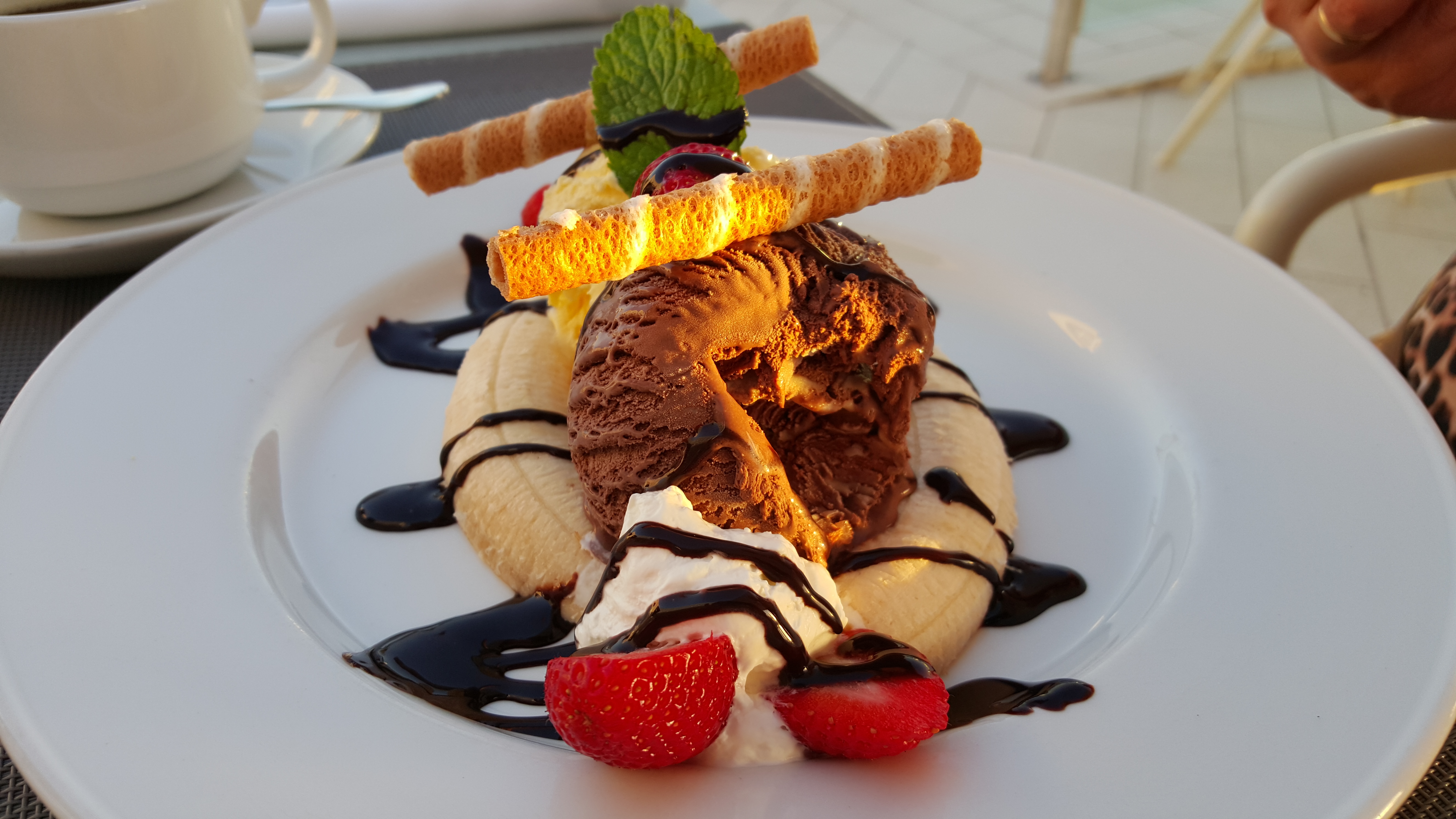 Banana split, med litt kanarisk kveldsol inn fra høyre.