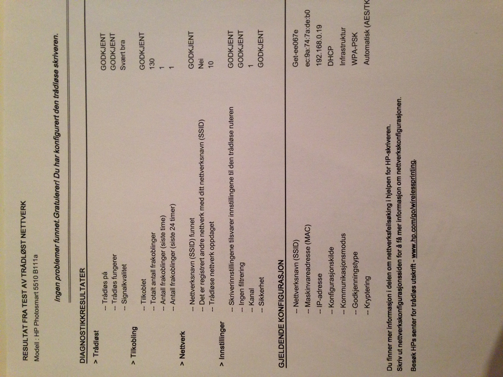 TeVa Skrevet 4. februar 2015 Skrevet 4. februar 2015 (endret) Har en HP Photosmart 5510 som er koblet trådløst til nettverket hjemme. Og ifølge vedlagte bilde, så sier vel også denne testen at alt er iorden. Men min pc og iPhone, som begge er koblet til samme nettverket, klarer ikke å få skriveren til å skrive ut. De finner ingen skriver. Dette funka fint i forrige uke. Men plutselig var det stopp. Har forsøkt å avinstallere skriveren, for så å installere den på nytt, men det hjelper ikke. Noen som har noen tips til meg? Mvh Endret 4. februar 2015 av TeVa