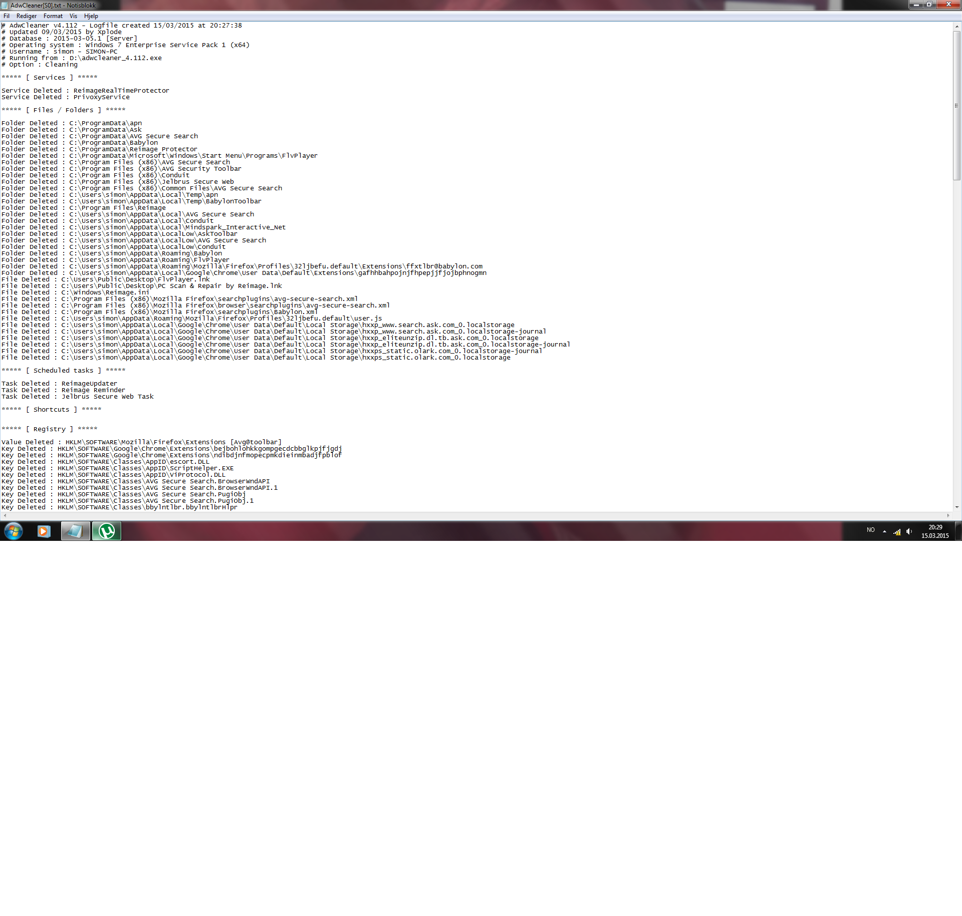 gta3-kongen Skrevet 15. mars 2015 Forfatter Skrevet 15. mars 2015 (endret) Da var AdwCleaner installert og en skann tatt og PC restarta.. Trur den fant to filer, det var en annen fil, inkludert Reimage. Her er rapporten Nettet virker mye raskere nå etter at jeg gjennomførte denne skanningen med AdwCleaner Nå får jeg opp alle bilder på TV2 sine sider men den reagerer fortsatt ikke på videoklipp her.. På VG kommer kun bilder opp på toppen og ikke lenger ned på siden.. De grønne ikonene og annonsene virker faktisk å være borte.. Jeg har hatt Google Chrome installert siden 2012.. Endret 15. mars 2015 av gta3-kongen