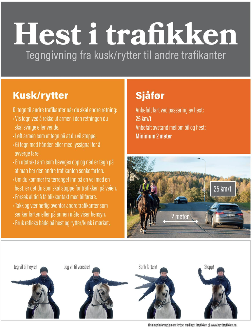 Theo343 Skrevet 14. februar 2018 Skrevet 14. februar 2018 (endret) Jeg synes denne som nå deles på Facebook og med kjøreskoler er veldig fin og det burde legges like mye i en for bilister-syklister. Norsk Hestesenter stiller seg, sammen med flere andre, bak denne plakaten om Hest i trafikken. Den er laget på initiativ fra Trøndelag Hesteeierforening, og har nå i første omgang blitt delt ut til alle trafikkskolene i Trøndelag. Kanskje kommer den til en trafikkskole nær deg? Vi registrerer med glede at plakaten med det viktige budskapet også blir delt av mange på facebook! Ønsker du mer informasjon om emnet, besøk gjerne www.hestitrafikken.no - en nettside laget i forbindelse med NHS sitt tidligere prosjekt om temaet. Endret 14. februar 2018 av Theo343 2