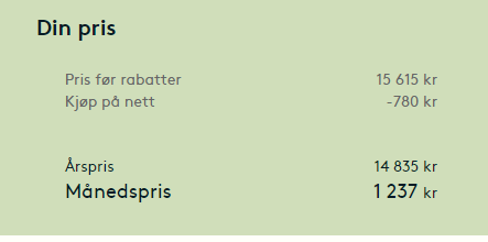 Gavekort Skrevet 7. juni 2015 Skrevet 7. juni 2015 Jeg har prutet meg ned til i overkant av 9000kr selv hos et annet forsikringsselskap, men når du er under 23 med start-bonus så er det ikke så mye du kan gjøre med prisen.
