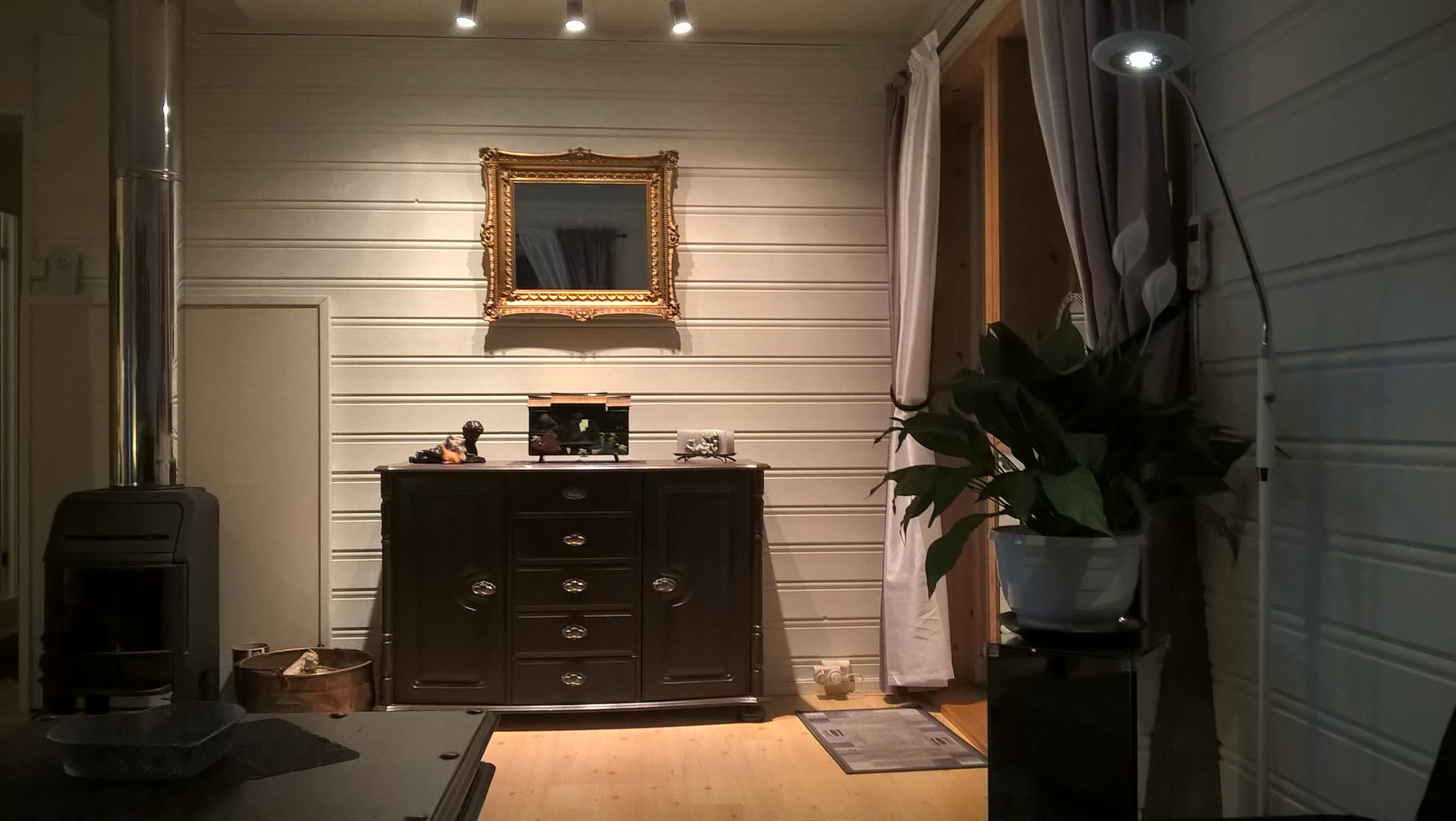 Jarmo Skrevet 21. november 2015 Skrevet 21. november 2015 Her er spottene opp i taket med max. lys. Dog kan jeg få mer lys hvis jeg bytter ut pærene.