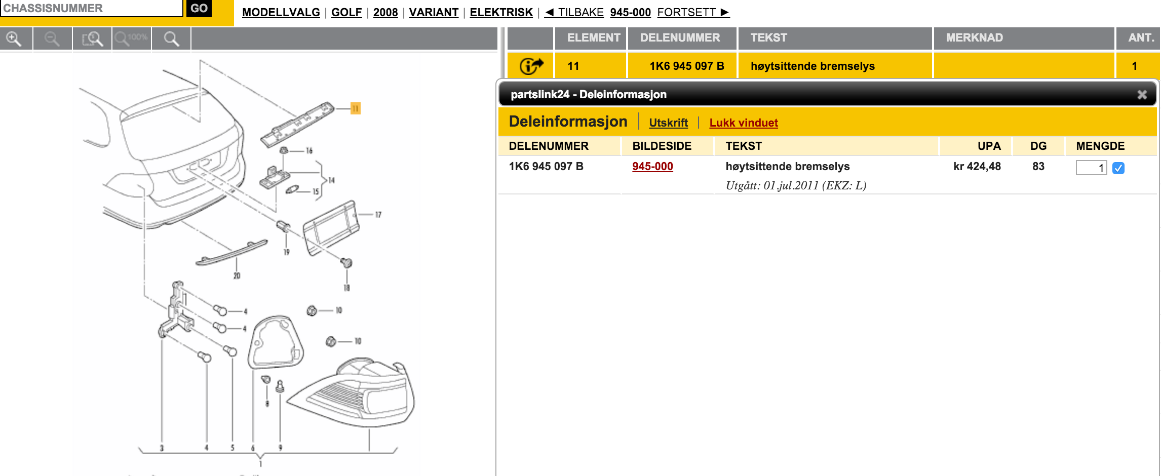 Obsverk Skrevet 4. januar 2016 Skrevet 4. januar 2016 Tror man kan få det løst, må ha skilt nr. for å finne eksakt del