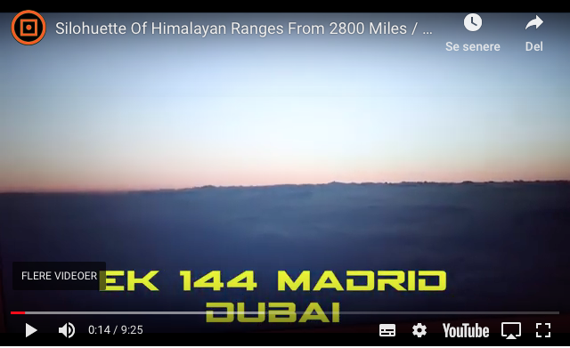 tom waits for alice Skrevet 24. juni 2019 Skrevet 24. juni 2019 Denne er nesten så jeg ikke tror selv. Det er bra. Han mener på han ser Himalaya fjellkjeden fra flyet som er på vei retning Sør Afrika til Dubai fra flykameraet på nesen av flyet. I følge teksten på videoen er han på Emirates EK 44 fra Madrid: Fjellene er nok ikke Himalaya, men fjellene langs Oman-gulfen. (Al Hajar); De er bare 10 mil unna. Det rimer bedre med synsvinkelen også. (Med mindre nesekameraet er et P1000... ) Å se Himalaya over skyene på 4500 kilometers avstand er omtrent som å se på en fortauskant på 100 meters avstand. Prøv det... Geir 3