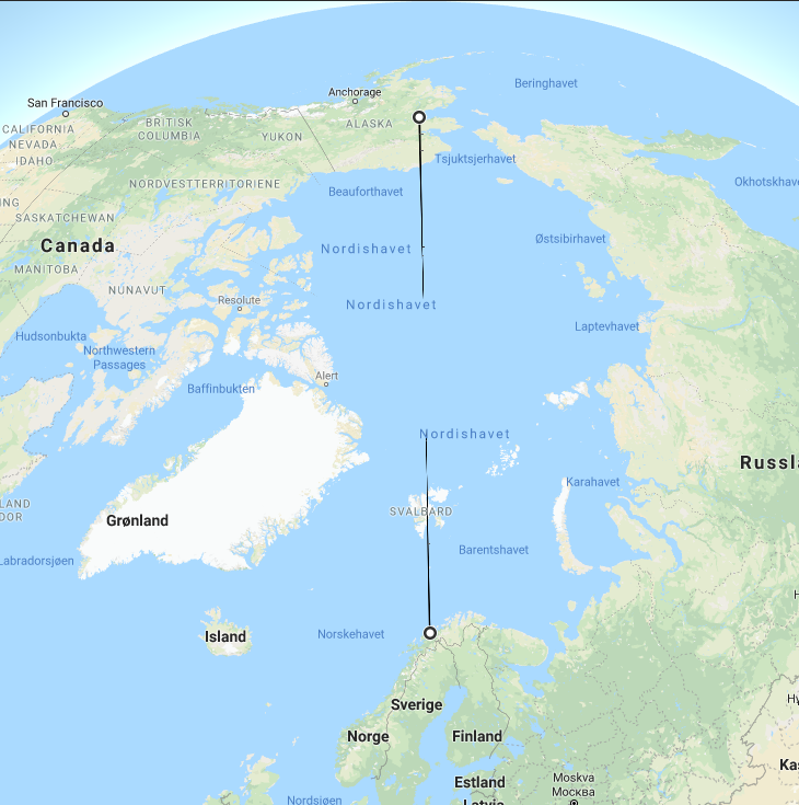 Reeve Skrevet 7. oktober 2019 Skrevet 7. oktober 2019 (endret) Det ville vel vært kortere å fly til Hawaii enn å nødlande i Alaska ser du vel. Men okey, skal kjøpe unnskyldningen med passasjerene og overnatting. Ellers så har jeg sett en video om at breddegradene på flat jord kartet i sør er utstrekt, så hvis de er korrekte så er det mye kortere distanser i sør en å bruke en vanlig linjal over kartet overalt. Så den virkelige verden blir kanskje vanskelig å skissere på en rund disk. Likeledes må jeg si det må være enda vanskeligere på en globus på 1600-tallet. Nei, se på bildet her da. Glem streken som går skrått fra Los Angeles tiL Alaska. Den lange streken er korteste vei på en klode mellom Hong Kong og LA. Som du ser, er det over dobbelt så langt til Hawaii, som det er til Alaska. Vi vet ikke om flyet fløy akkurat her, det kan ha flydd en godt stykke lengre nord eller sør, som sagt flyr ikke flyene alltid korteste vei, de utnytter vinder osv., men det vil nok nesten aldri være kortere vei til Hawaii enn til Alaska langs den ruten der. Edit: Her er samme rute tegnet opp i program hvor den viser et flatt kart. Jeg skjønner dette ser rart ut, men på globusen over, ser du at det egentlig er en rett strek. Flate kart viser ikke ting helt riktig, men dette er ikke en hemmelighet, det er noe man lærer så tidlig som på barneskolen. Edit: Enda mer ekstremt eksempel. Hvis vi skal fly fra Tromsø tiL Alaska, så går det rett over Nordpolen. Men på "flate" kart, som vi ofte bruker (samme som verdenskart du kan henge opp på veggen), så ser det helt rart ut. Men du forstår vel at det er riktig å fly rett over nordpolen, for å komme korteste vei til Alaska? Endret 7. oktober 2019 av Reeve 4