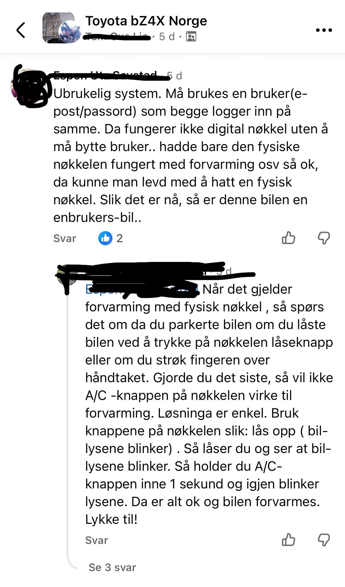 På 2026 Bz4x så har de tatt vekk fjernstyring av forvarming fra nøkkelen, og man kan ikke ha flere brukere i appen…