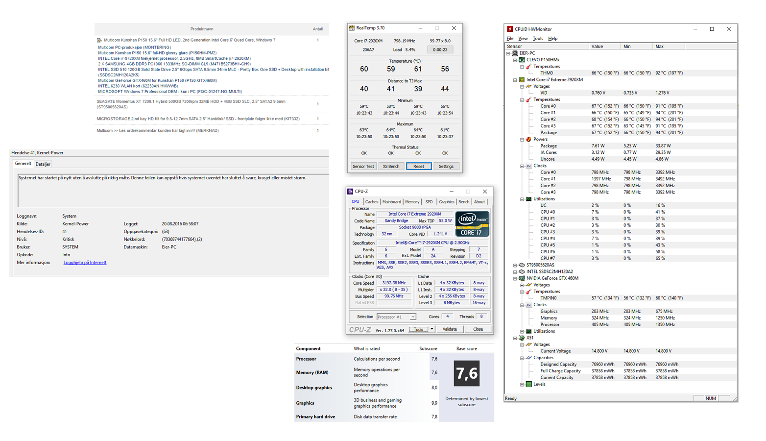 Zafar Iqbal Skrevet 20. august 2016 Skrevet 20. august 2016 (endret) Hei, I 2011 kjøpte jeg en pc som var satt sammen hos Multicom. Pcen var satt sammen med det som den gangen skulle være siste og beste innen teknologi. Formålet med oppsettet var bilderedigering.Jeg har nå hatt pcen i 6 år og de siste 2 årene har jeg hvert veldig mye plaget av at pcen slår seg av stadigvekk. Det virker som om den går varm el.lFellestrekkene for hver gang den slår seg av er at Prosesser viftene går helt amokk med høy omdreining og at maskinen virker veldig varm. Ofte forekommer dette når jeg kjører mange prosesser eller driver med bilderedigering hvor jeg jobber med flere tunge program samtidig(Lighrrom, photoshop etc). Jeg har forsøkt å sjekke om en eller flere vifter ikke jobbet helt som de skal. Men for meg virker det som om alt er i orden. Det som er merkelig er at den har fungert utmerket de 4 første årene.Jeg legger ved et bilde som viser feilen, diverse logger og systeminformasjon. Lenke til bildeHåper det er noen som har gode tips:) Jeg er veldig fornøyd med pcen, men mister ofte arbeid når den slår seg av på denne måten. På forhånd takk til alle som setter av tid til å gi råd. Endret 20. august 2016 av Zafar Iqbal