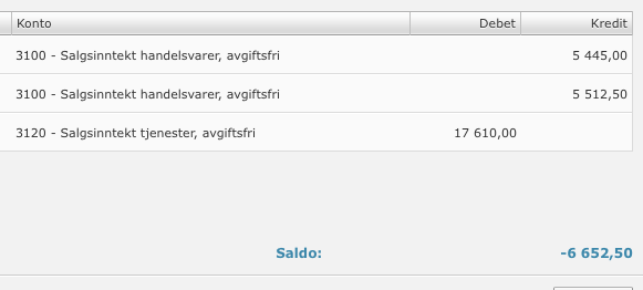 4m4tør Skrevet 31. august 2016 Skrevet 31. august 2016 (endret) Hei Jeg skal sende inn min første omsetningsoppgave, og har møtt på trøbbel. I post 3, "Post 3 Omsetning og uttak i post 2 som er fritatt for merverdiavgift og omsetning med omvendt avgiftsplikt" får jeg feilmelding om at det ikke kan være et negativt tall. Grunnen til at det er negativt ser ut til å være en kreditnota mot en faktura som hadde feil, og to stk fakturaer som var etterfakturering av mva. Se bilde. Noen som har noen forslag til hva jeg bør gjøre? Endret 31. august 2016 av 4m4tør
