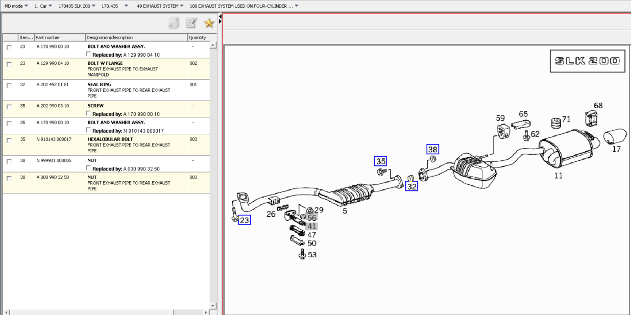 R170 1998 SLK, pakning mellom manifold og eksost