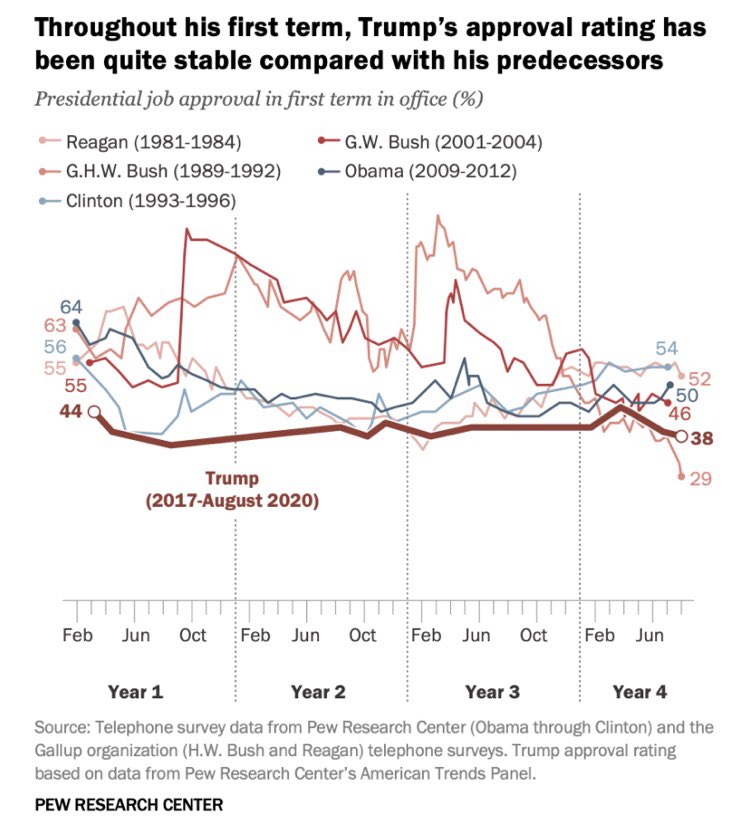 Snikpellik Skrevet 15. september 2020 Skrevet 15. september 2020 (endret) frohmage skrev (10 timer siden): Gjeddebassen forklarer i et innlegg i Aftenposten hvorfor han mener Trump fortjener fredsprisen. Gjedde: "Ikke siden Eisenhower har en president vært like populær i eget parti. Trumps popularitet viser seg også å være svært stabil. Jeg vil derfor påstå at journalister flest ikke forstår USAs kompleksitet eller de dypereliggende årsakene for Trumps popularitet." Man blir jo litt matt over måten Gjedde kritiserer medier for å male det han mener er et feil bilde, mens hans selv presenterer tall feil og uærlig. Gjedde unnlater her å nevne noe helt essensielt, nemlig hvilket nivå Trumps popularitet faktisk har vært stabil på ifølge kilden han selv bruker. Sitat Trump’s job approval rating at this point in his presidency is lower than that of all of his recent predecessors except George H.W. Bush. The 38% of Americans who approve of Trump’s performance today compares with 29% for Bush in 1992. However, the two presidents’ disapproval rating is similar: 58% disapprove of Trump’s performance today, compared with 60% for Bush in 1992. Når det gjelder popularitet i eget parti dropper også Gjedde å nevne at bare rundt 40% av velgerne i dag regner seg som republikanere. Rundt av 82% av disse er fornøyd med Trump om man ser på snittmålinger, og det er faktisk ikke så mange historisk sett. Endret 15. september 2020 av Snikpellik 5
