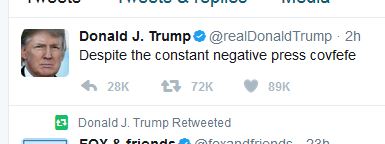 xRun Skrevet 31. mai 2017 Skrevet 31. mai 2017 (endret) Veddemål for når offisielt sammenbrudd vil skje er herved åpnet: Trender, og dekkes på nyhetskanaler pga. at den trender. Den forble oppe i feeden hans mange timer, til han våknet, oppdaget oppstyret, fjernet den og prøvde å spille på filosofiske strenger: Ikke å forglemme: dette havner i US National Archives som en av den 45. presidentens ytringer, og kanskje også i Library of Congress. Blir kanskje også en del av ettertidens ordforråd? Have a nice covfefe! Endret 31. mai 2017 av xRun