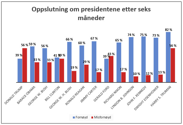 After Dark Skrevet 20. juli 2017 Skrevet 20. juli 2017 Donald Trump blir bare mer og mer upopulær: Meningsmålinger: Laveste oppslutning om en president noensinne Etter et halvt år i det hvite hus oppgir flere at de er misfornøyde med Trump enn at de støtter ham. http://www.vg.no/nyheter/utenriks/amerikansk-politikk/meningsmaalinger-laveste-oppslutning-om-en-president-noensinne/a/24099238/ 2