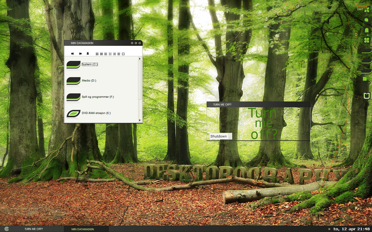 IceFox Skrevet 11. april 2007 Skrevet 11. april 2007 Ikke helt "fan" av wallpaperet, samt at du kunne funnet noe litt mer "lekne" ikoner som passet det bedre... PS: Gidder du poste bilder i PNG fra nå av? Udigg kvalitet på JPEG