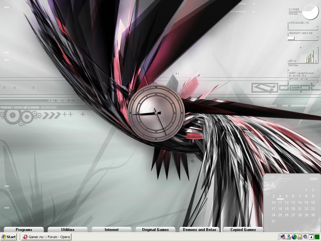 Idioteque Skrevet 4. januar 2005 Skrevet 4. januar 2005 Mitt desktop, veldig fornøgd med det faktisk, selv om jeg er helt blank på modding